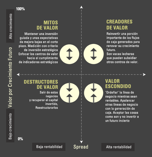 Un mapa de valor permite definir los movimientos estratégicos que crean valor según las bases económicas de cada unidad de negocio, producto o cliente. Los mapas permiten tomar decisiones alineadas con la maximización del valor de las empresas.